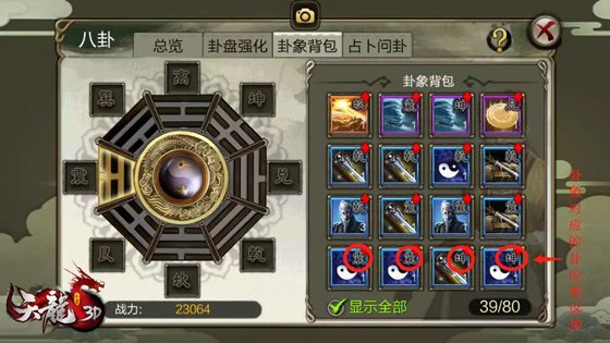 八卦首要分為卦位和卦象兩部分。在【八卦】→【卦盤強化】分頁能夠看到卦位,強化卦位能取得特點和战力的提高,卦位強化到必定等級時分,也能提高本位置的卦象特點。
