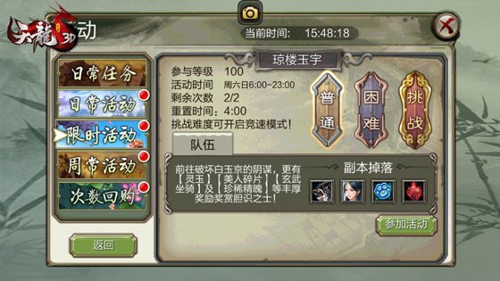 - 09-10有几率开启奇遇副本击杀副本天龙BOSS得奖赏