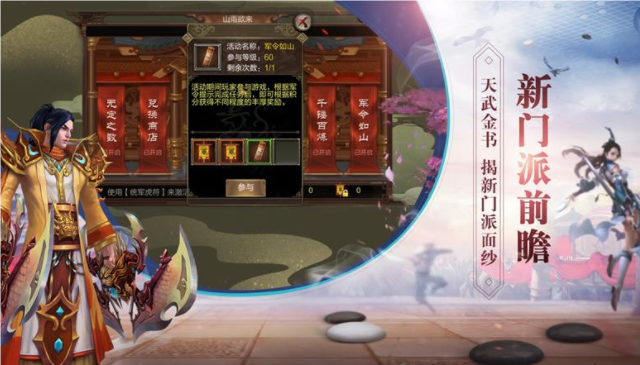 讓不同战力階段的玩家有不同的遊戲體驗!副本新增了史無前例的“詞綴體系”,每個詞綴代表壹個buff效果,妳選擇的詞綴將在战斗的玩家或怪物身上表現。 妳的战斗妳來定義!八人組隊,雙線作战,還有眾多維護白棋、boss战玩法等妳壹探終究!好消息,好消息,《天龍3D》又要出新門派啦!可是新門派上線需求等到下個資料片了。 這次的資料片將會對新門派進行預熱,主題月將進行修改,小活動軍令如山、千錘百煉揭秘新職業奧秘面紗。還有全新的支線使命,調查軍隊中意圖謀反的反賊。