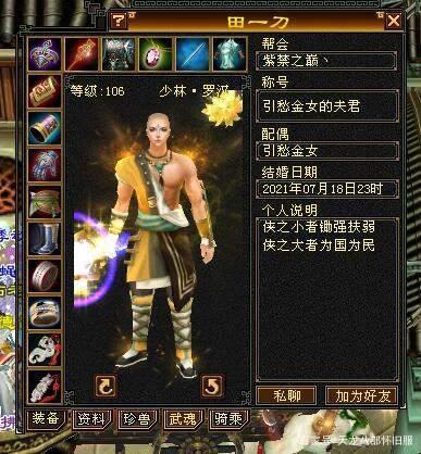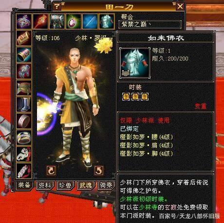 这位少林大佬的重视度,可以说是居高不下。今天小编给咱们展示一下挑选少林罗汉门户后的田一刀全新配备图。