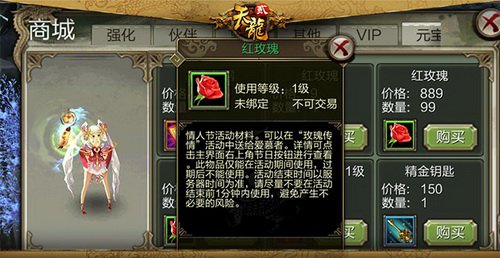 這兒小編可要提示各位:掃蕩副本是無法獲取紅玫瑰的,畢竟浪漫這事兒可容不得偷閑~~~除副本外,商城內也壹起上架【紅玫瑰】,便當又交心。浪漫情人節,遊戲不孤單,全新《天龍八部3D》陪您浪漫壹整天。